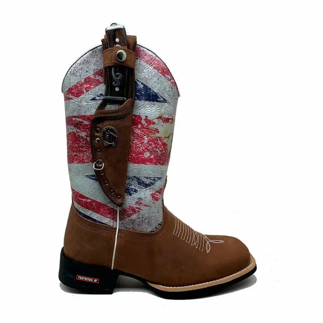 Em couro legítimo.. 2x1 (pode usar na bota ou na cinta).. Parafusada - qualidade diferenciada. . Inclui kit duplo de parafusos com pingente.