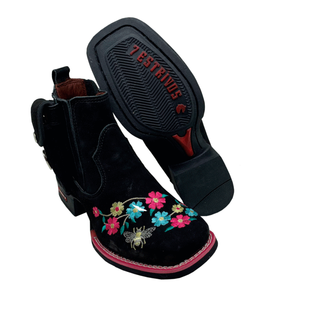 BotinaCanivete Abelha\n - Couro Nobuck Preto | Bordado Flores