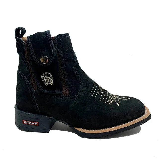BotinaCanivete Tradicional\n - Couro Nobuck Preto | Bordado Bege