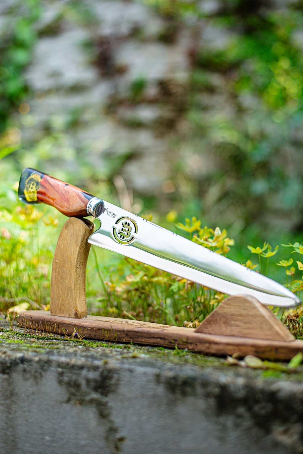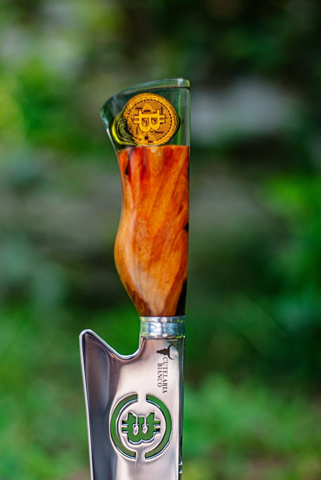 - Cabo em Cristal Líquido com Pingente Exclusivo: Feito à mão pelo mestre cuteleiro Bianco, o cabo oferece uma estética única a cada faca personalizada.