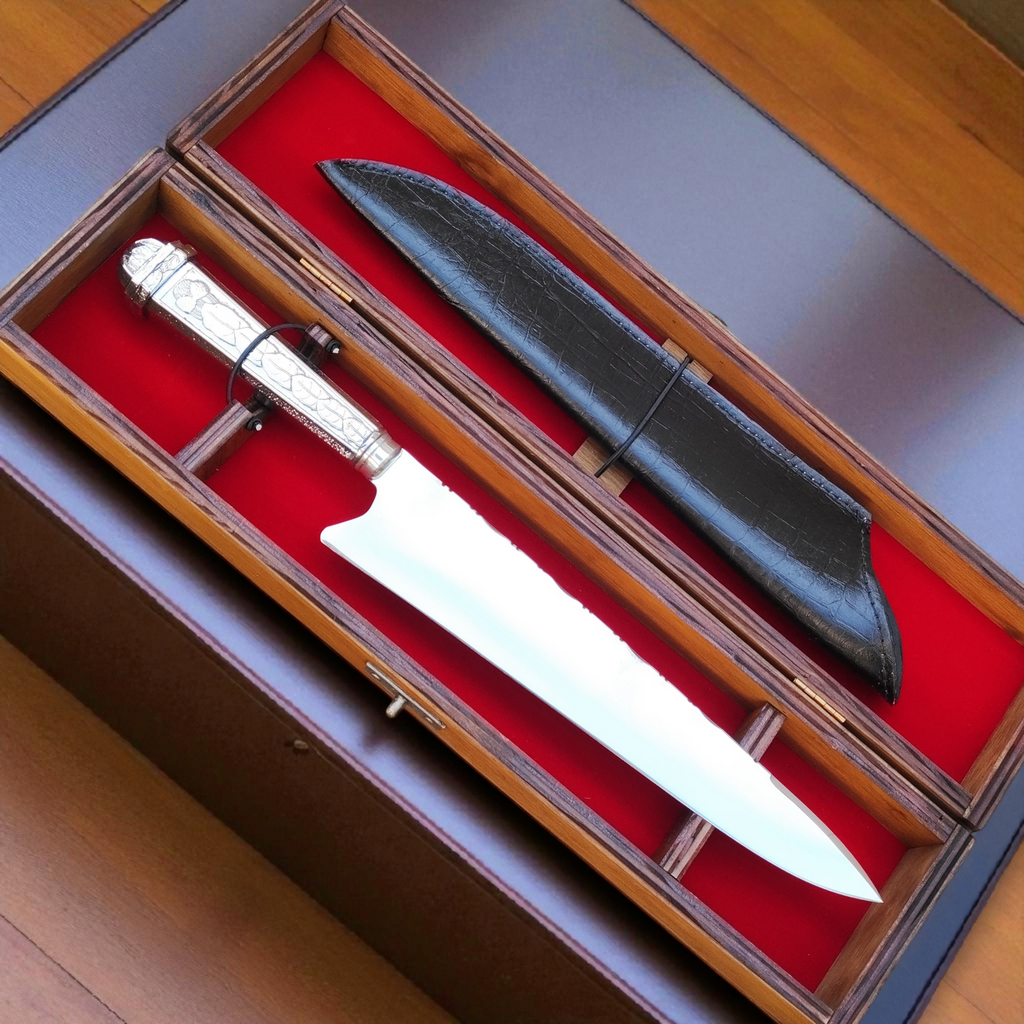 Na Cutelaria Bianco, oferecemos a chance única de personalizar sua faca com uma gravação a laser do seu nome, tornando-a verdadeiramente sua. Cada faca é uma obra de arte, forjada à moda antiga, garantindo não só um fio duradouro mas também uma experiência de corte ancestral.