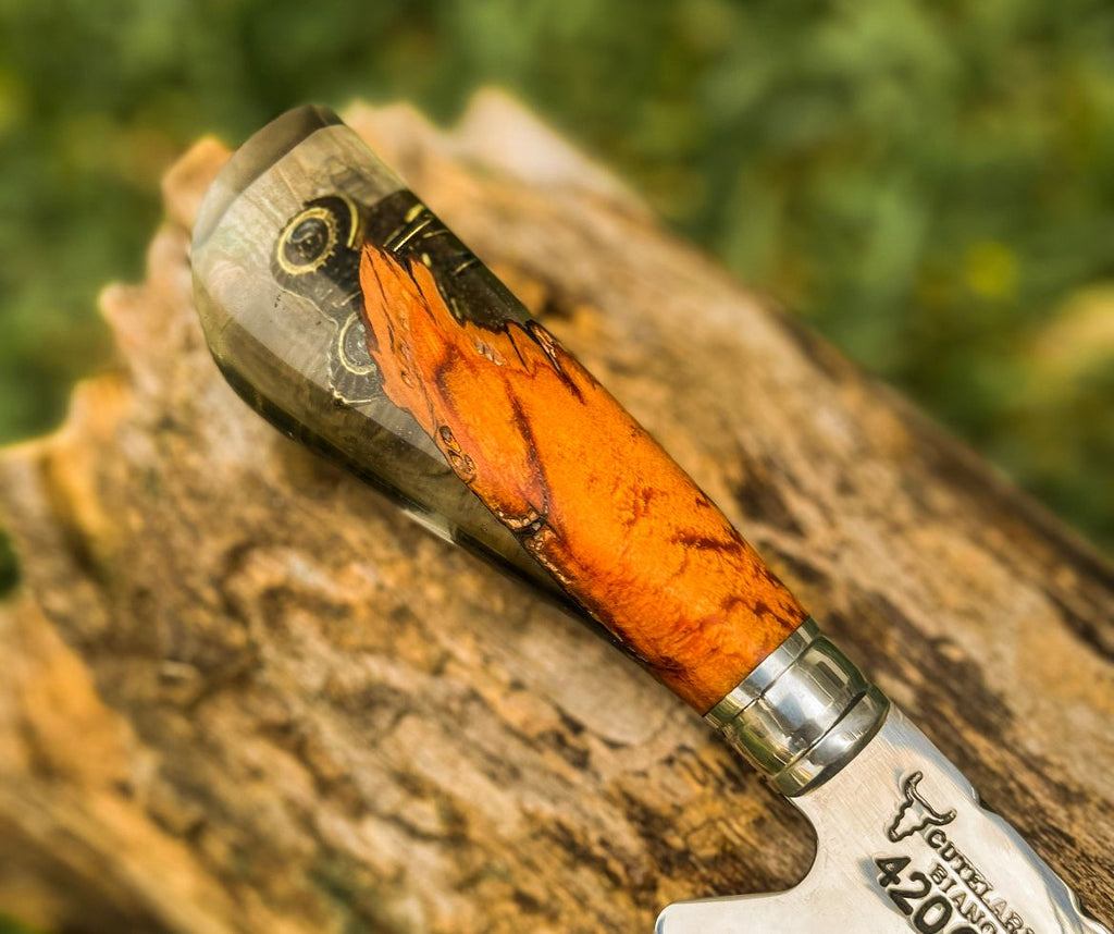 • Personalização: Com vários modelos de lâmina disponíveis e gravação a laser personalizada, a faca artesanal se torna um item único e especial para o comprador ou para presentear alguém.