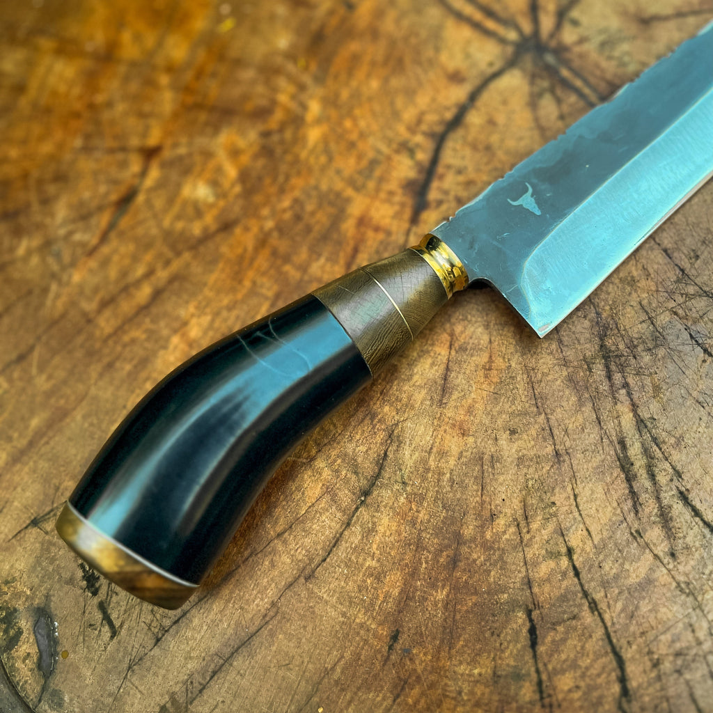 • Cabo  em chifre de bufalo e couro : Combinação esclusiva, garantindo beleza e durabilidade excepcionais ao cabo