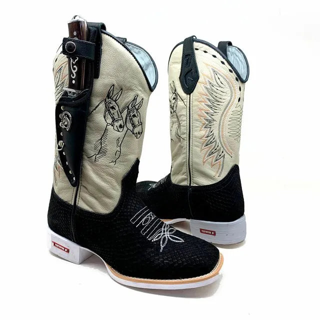 BotaFaca Mulas\n - Couro Cano Napa Flay Bege | Gáspea Couro Nobuck Preto Estilizado em Tilápia | Mulas Preto