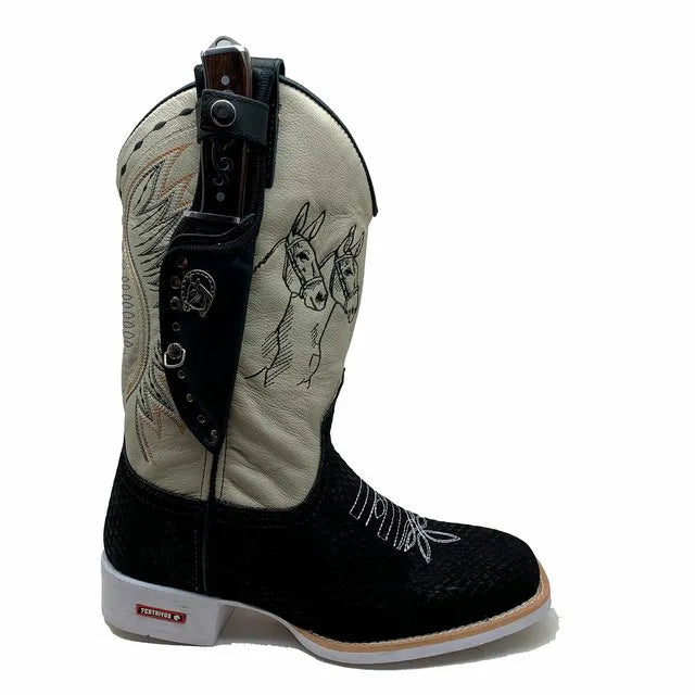 Em couro legítimo.. 2x1 (pode usar na bota ou na cinta).. Parafusada - qualidade diferenciada. . Inclui kit duplo de parafusos com pingente.
