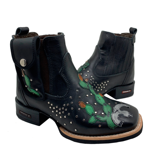 BotinaCanivete Faroeste\n - Couro Látego Preto