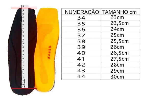 É resistente e extremamente confortável. Possui o solado colado e costurado, o que garante durabilidade e confiança.