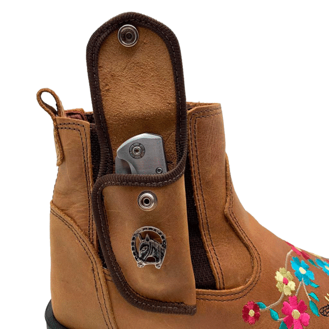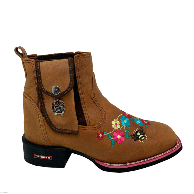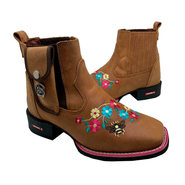 BotinaCanivete Abelha\n - Couro Fóssil Havana | Bordado Flores