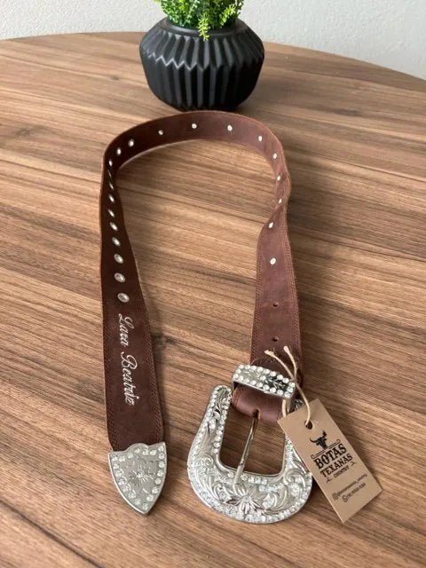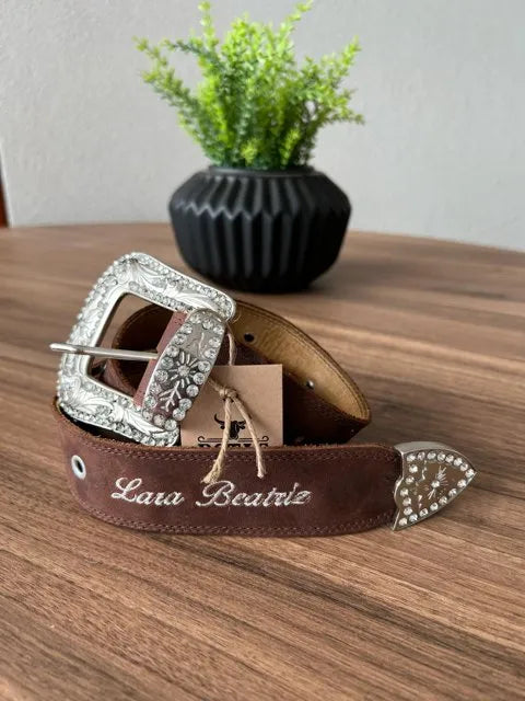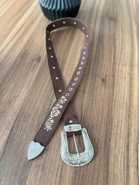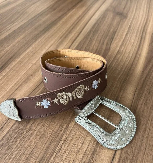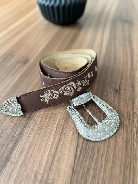 Cinto - Couro Horse Nescau/Bordado Florência
