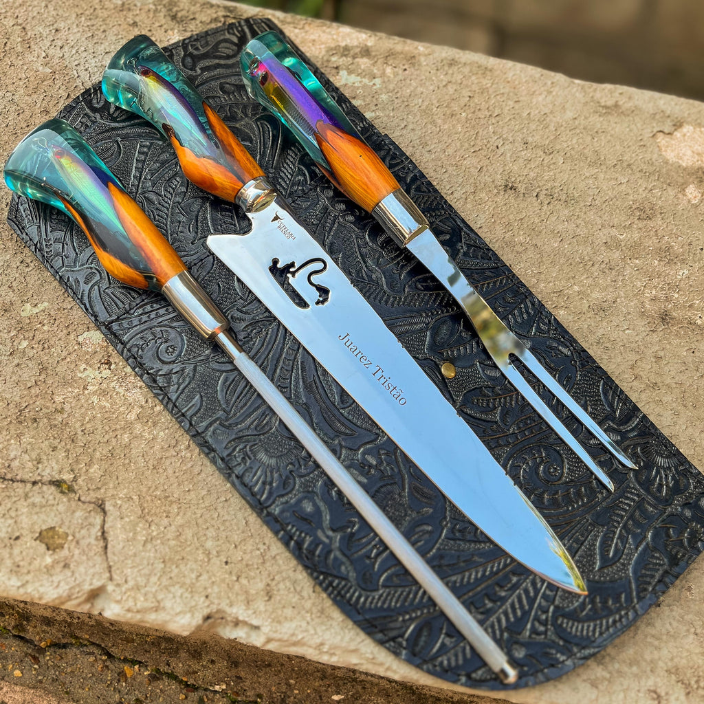 Você é um verdadeiro churrasqueiro e sabe que o melhor preparo começa com as melhores ferramentas. Apresentamos o Kit Churrasqueiro Profissional ideal para o preparo e corte de diversos tipos de carne. Com cabo de madeira, essas peças proporcionam conforto e segurança durante o manuseio. Além disso, acompanha uma bainha para transporte e armazenamento, uma elegante embalagem para presente e ainda oferecemos a possibilidade de gravação do seu nome, tornando o kit ainda mais exclusivo e personalizado. Invista em você e no seu amor pelo churrasco com o Kit Churrasqueiro Profissional.