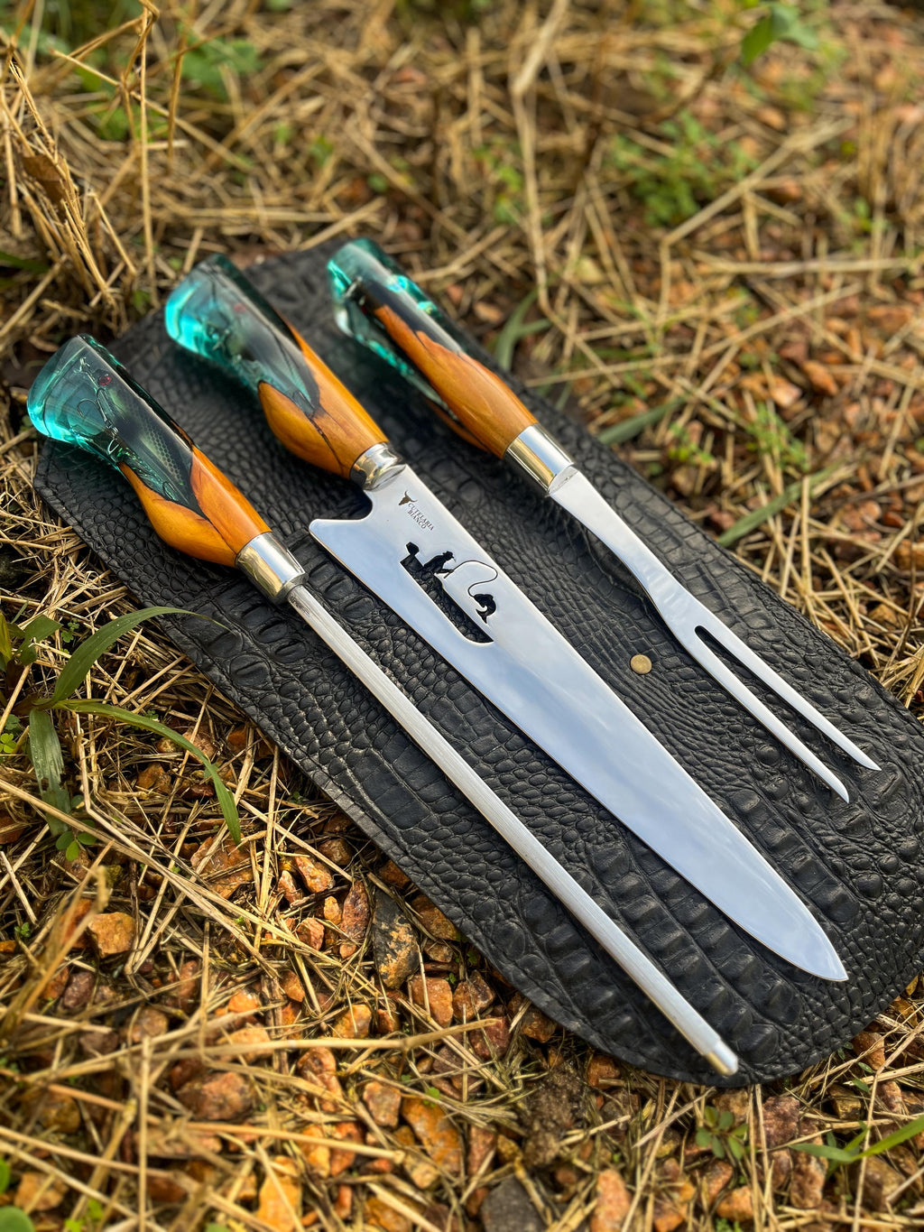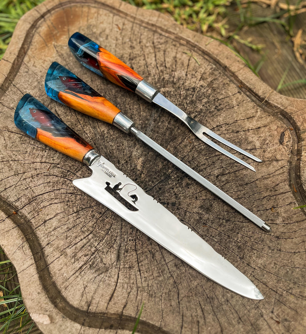 Você é um verdadeiro churrasqueiro e sabe que o melhor preparo começa com as melhores ferramentas. Apresentamos o Kit Churrasqueiro Profissional ideal para o preparo e corte de diversos tipos de carne. Com cabo de madeira, essas peças proporcionam conforto e segurança durante o manuseio. Além disso, acompanha uma bainha para transporte e armazenamento, uma elegante embalagem para presente e ainda oferecemos a possibilidade de gravação do seu nome, tornando o kit ainda mais exclusivo e personalizado. Invista em você e no seu amor pelo churrasco com o Kit Churrasqueiro Profissional.
