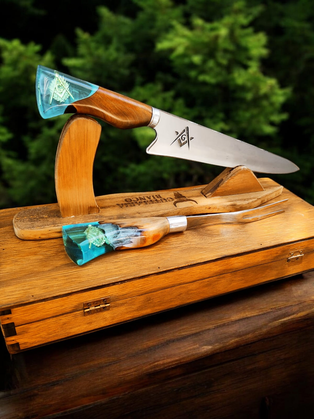 Kit churrasqueiro Ser Maçom da Cutelaria Bianco é feito especialmente para você mestre churrasqueiro que procura sofisticação, praticidade e qualidade na hora de fazer o teu churrasco ENTRE COLUNAS.