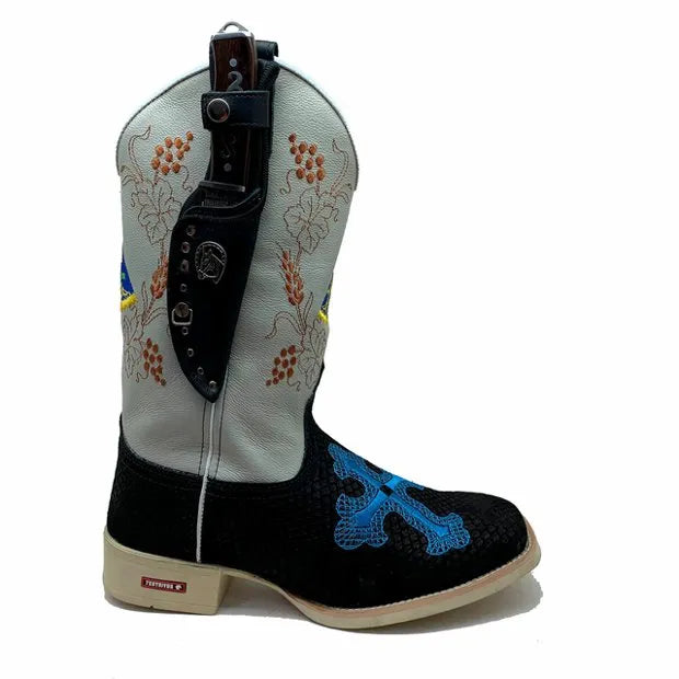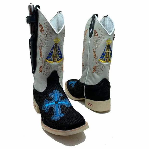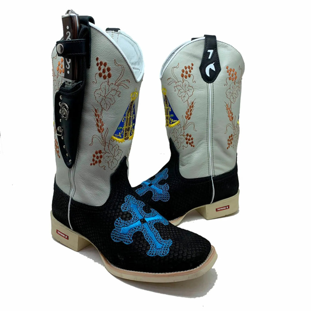 BotaFaca Cristã\n - Cano Couro Napa Flay Bege | Gáspea Couro Nobuck Chocolate Estilizado em Tilápia