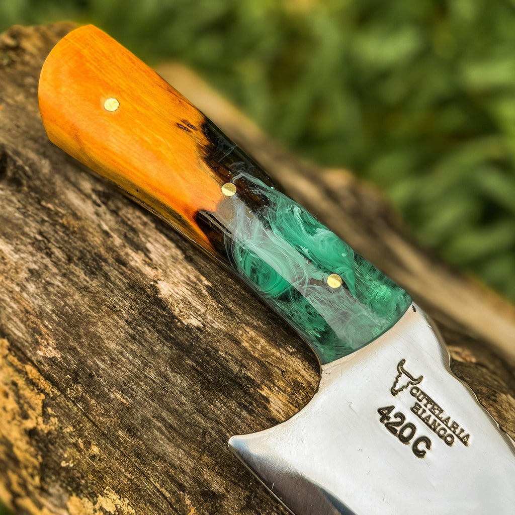 Personalização: Com vários modelos de lâmina disponíveis e gravação a laser personalizada, a faca artesanal se torna um item único e especial para o comprador ou para presentear alguém.